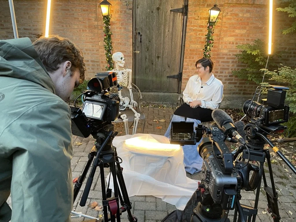 This project being one of the first things I had ever directed was very educational. This was a very small student production, so I had to wear a lot of hats that were new to me including production designer, producer, and editor. Despite the challenges thrown at this production, including no-show actors and lawn care next to the shoot, I kept a positive outlook and came up with creative solutions.